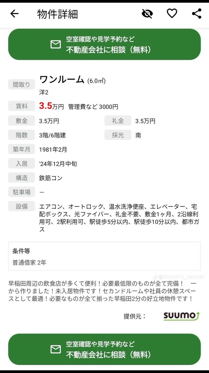 歌舞伎町周辺ならありやけど早稲田周辺で築年数これなら無しやろ