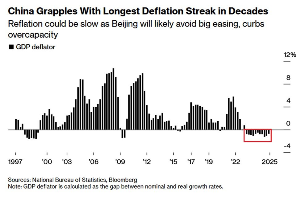中国、30年以上で最長のデフレに突入、不動産不況・需要不足・過剰生産で価格下落が続く