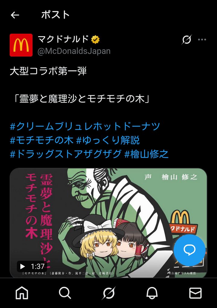 マクドナルドが大型コラボ 「霊夢と魔理沙とモチモチの木」