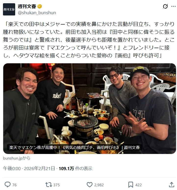 マエケン喋り上手いし基本ニコニコしてるからイメージいいよな
