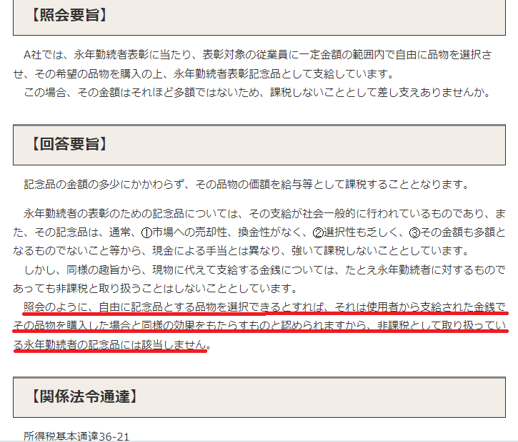 しかし、同様の趣旨から、現物に代えて支給する金銭については、たとえ永年勤続者に対するものであっても