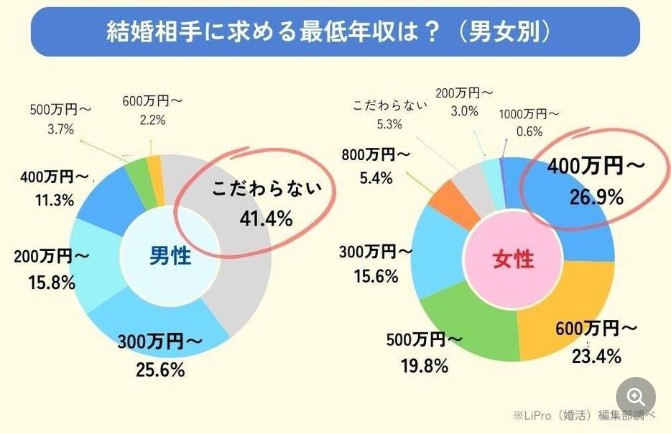 一方で男性は、女性の年収に「こだわらない」が最多を占めた。