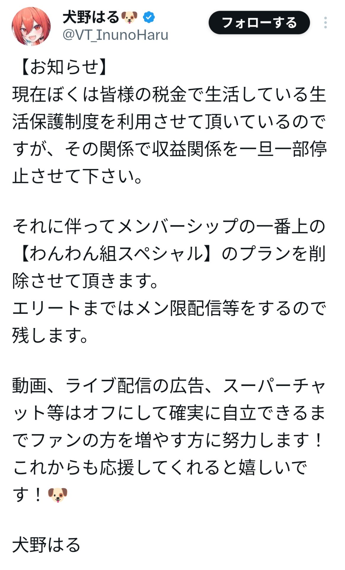 【悲報】VTuberさん、生活保護で生活していたのに収益化していたのがバレて土下座謝罪&収益化停止