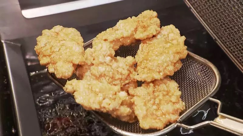 東京都内のから揚げ店では、お昼時を前に次々と鶏肉が揚げられていきます。