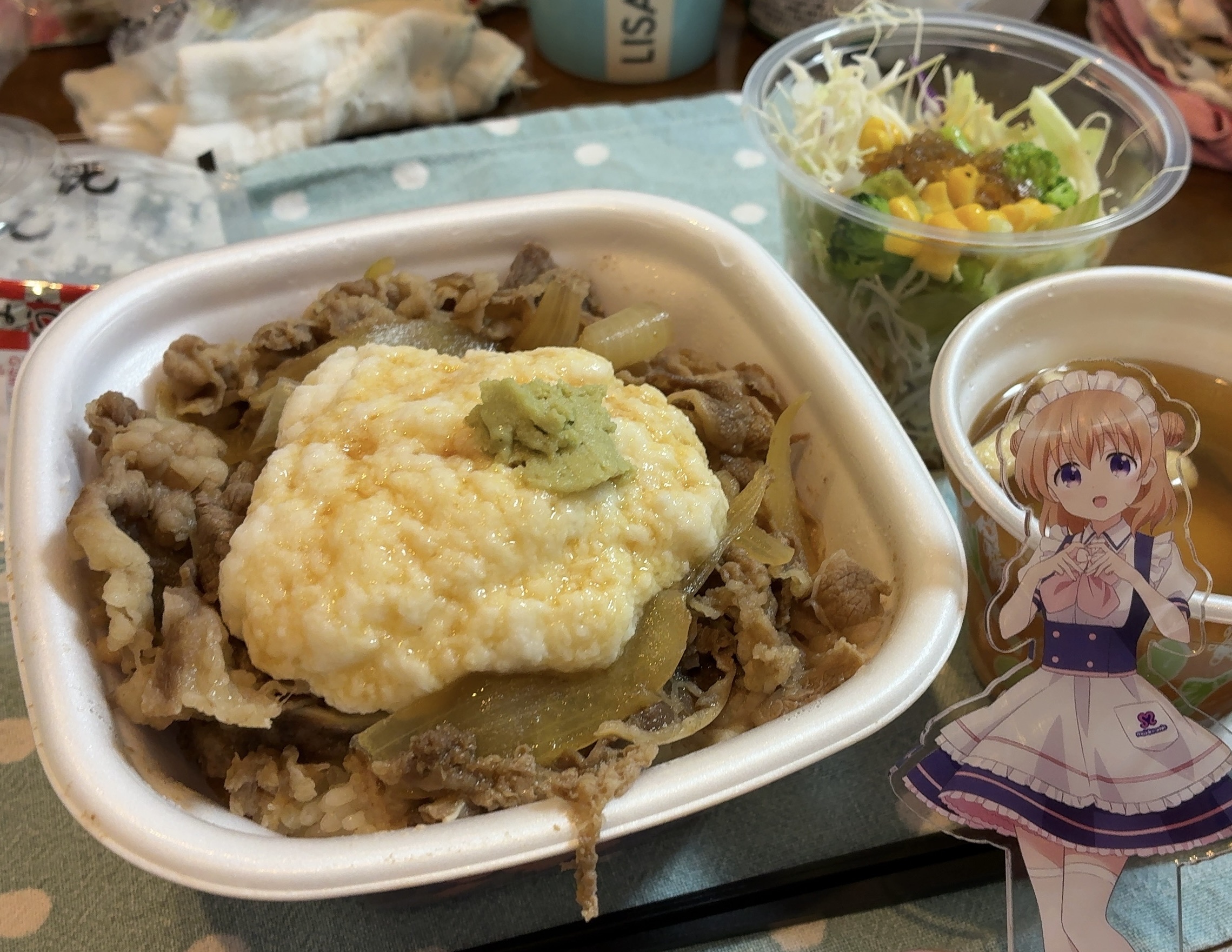 こんな感じでアクリルスタンドやぬいぐるみやチェキと一緒にメシの写真撮るオタク本当に気持ち悪い