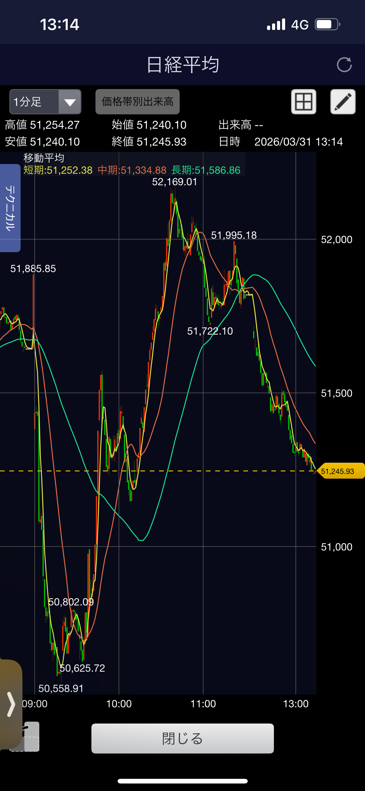 朝イチ-1500から1時間でプラ転し+400円まで上がる