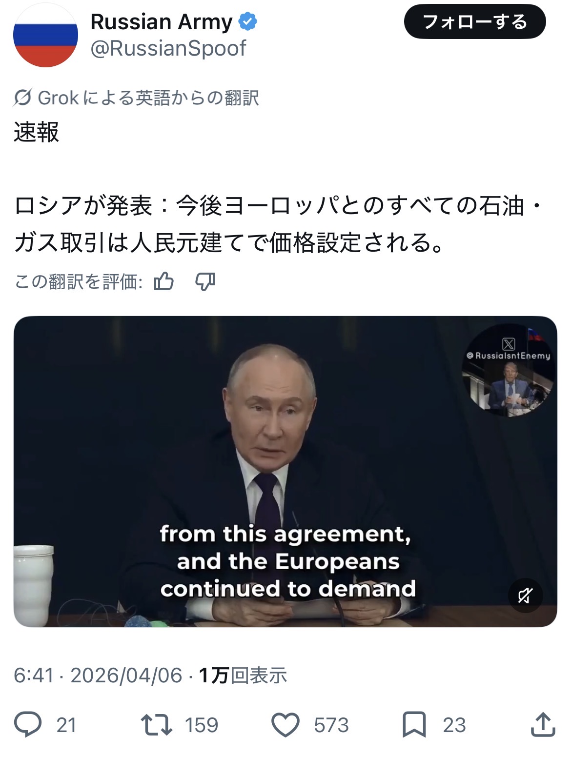プーチン大統領「ヨーロッパとの原油ガス取り引きは今後すべて『人民元』になる」 とうとう中国覇権へ