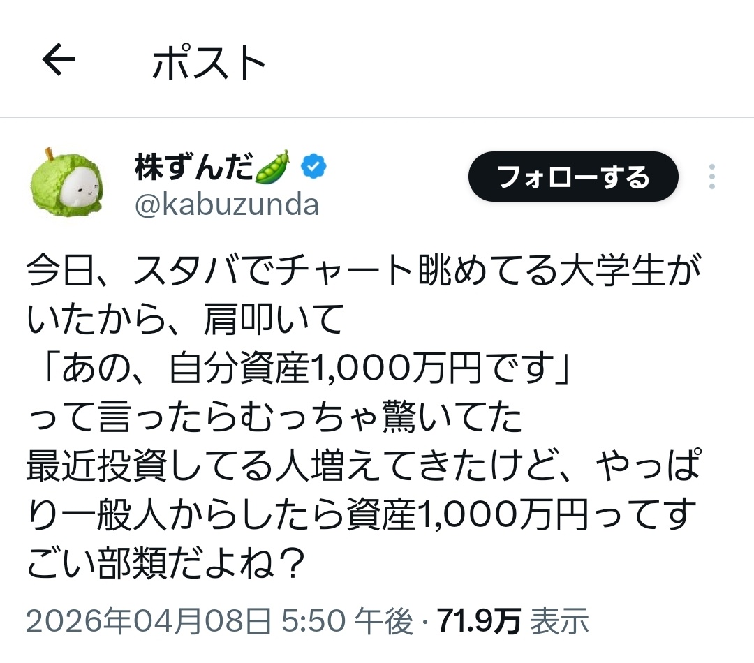 投資家さん、資産が多すぎて大学生を驚愕させてしまう