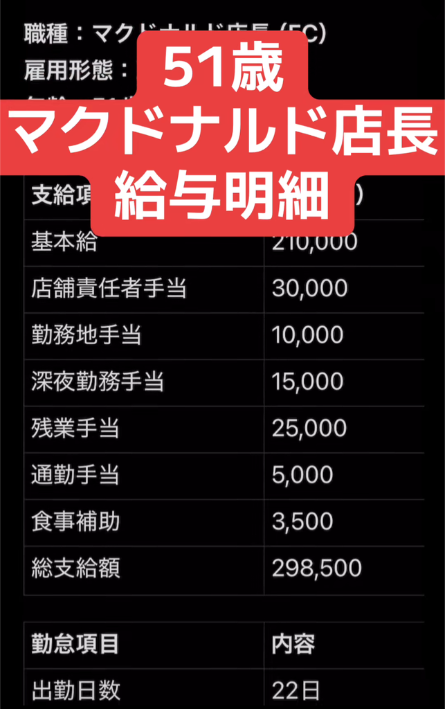 マクド店長の給与明細、夢ぶっ壊しにきてて草www