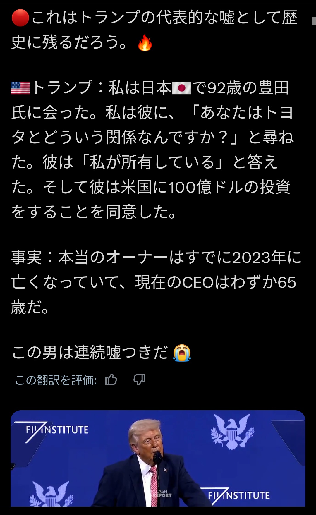 【朗報】トランプ、2023年に亡くなったトヨタの元会長と会談する😤