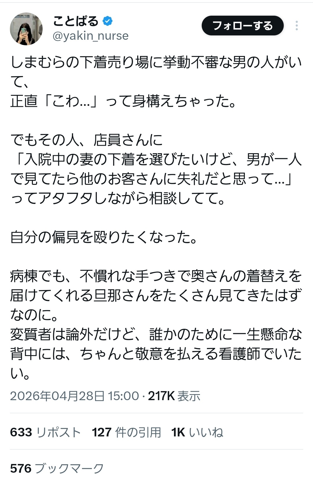 【感動】X民「しまむらの下〇売り場に挙動不審の男がいたwwwww」→結果 全X民号泣