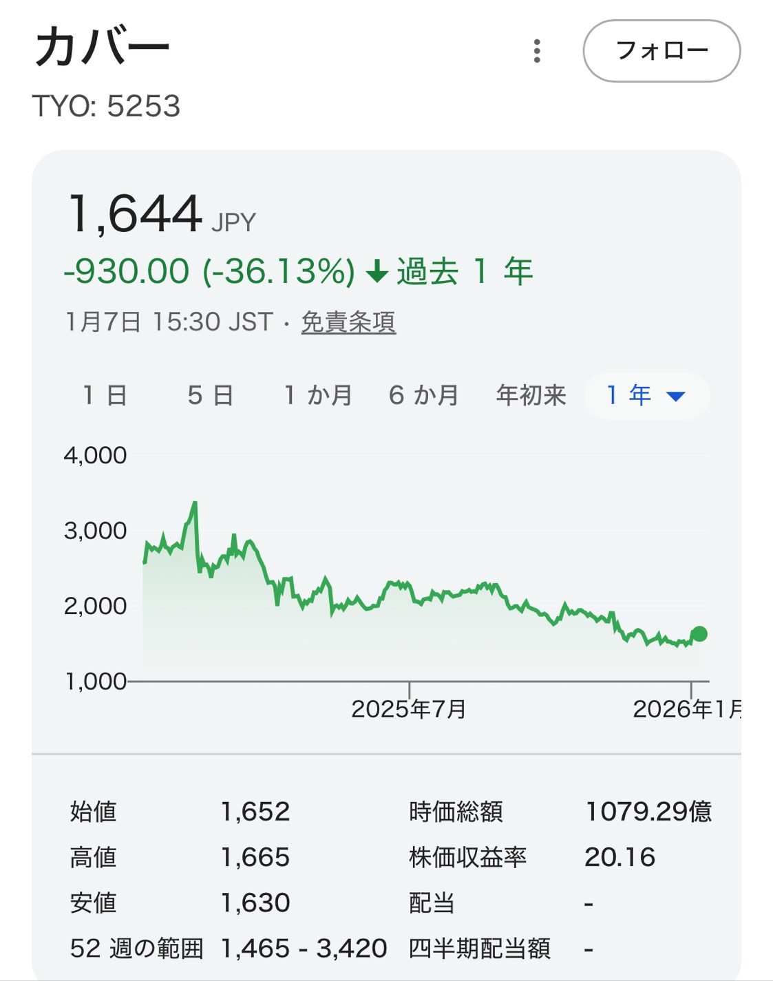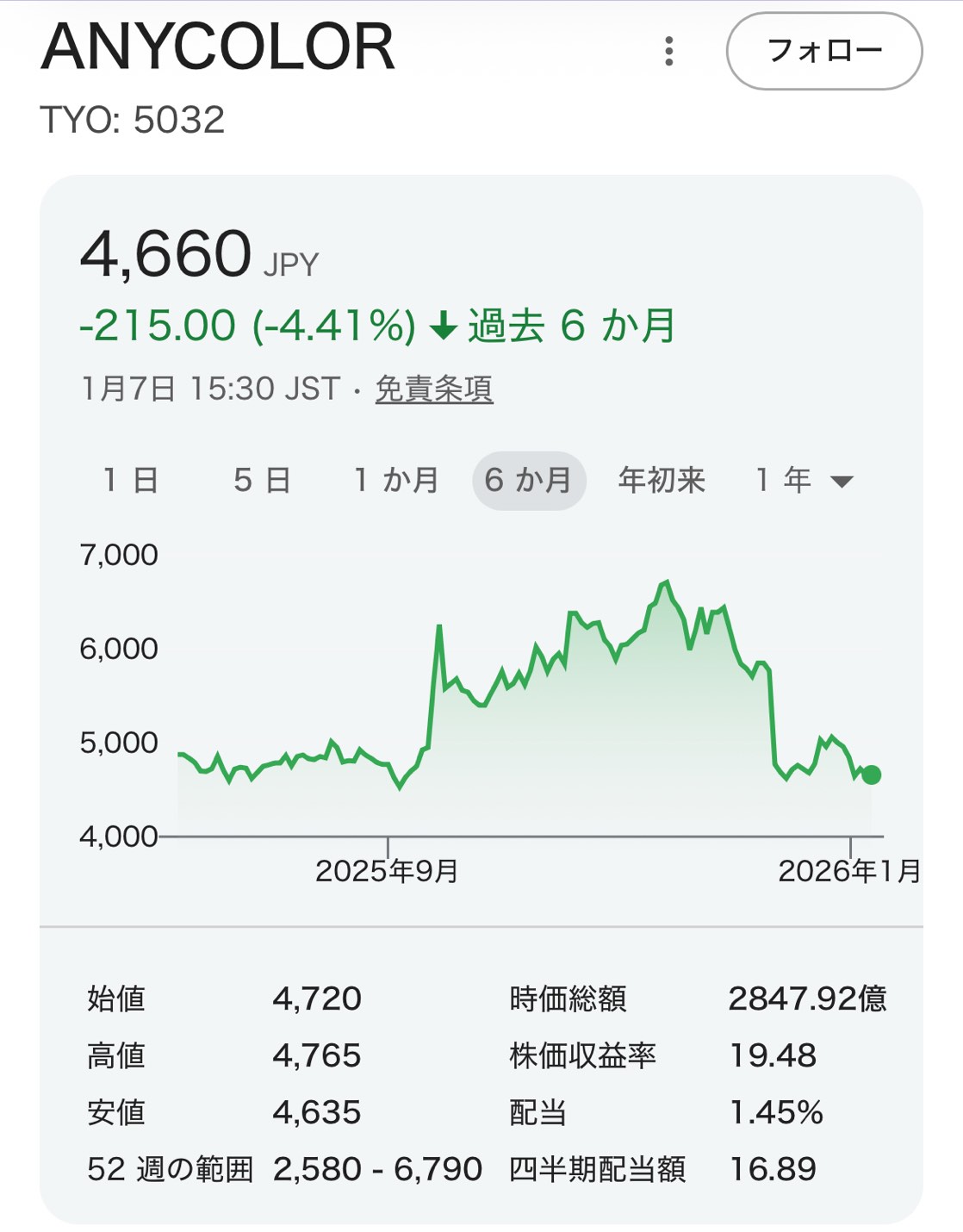 にじさんじの会社、年末に株価めっちゃ下がってるけど何かあったの?
