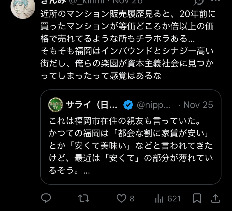 博多駅の近くも10年前はめっちゃ家賃安かった記憶