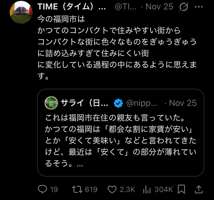 【悲報】福岡市民「あの頃の福岡を返して!」再開発で家賃が名古屋越えて終わる