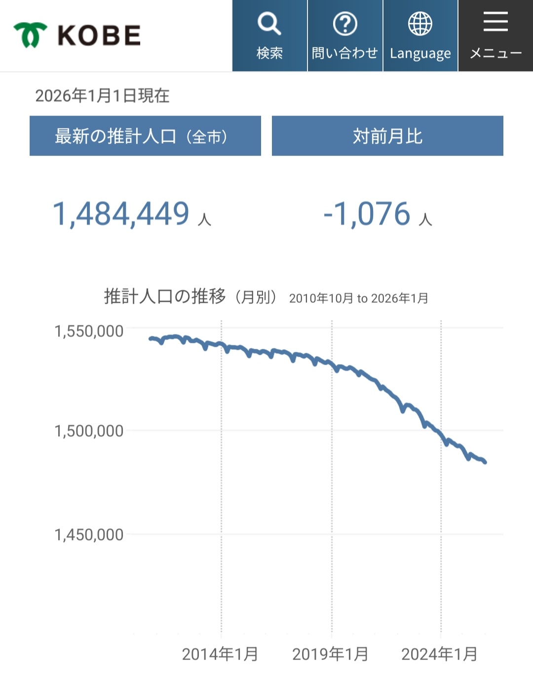 神戸市は人口減少数が日本一という事実