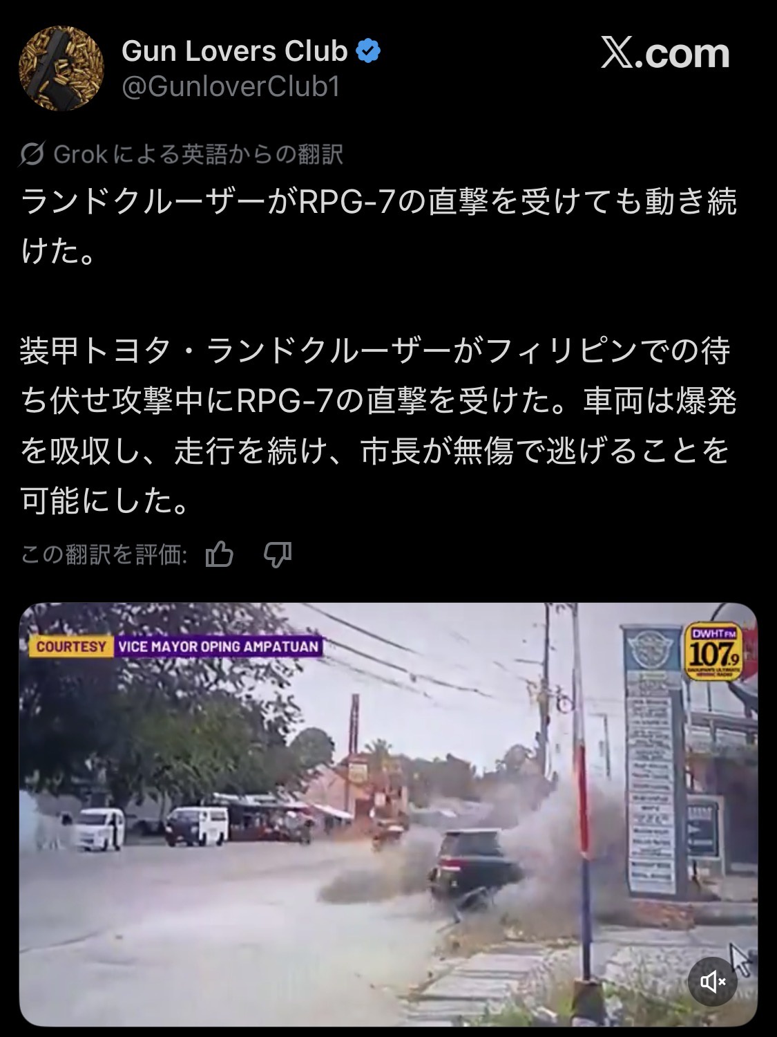 トヨタ・ランドクルーザー、RPG-7の直撃を受けても無事wwwwwwwwwwwwww
