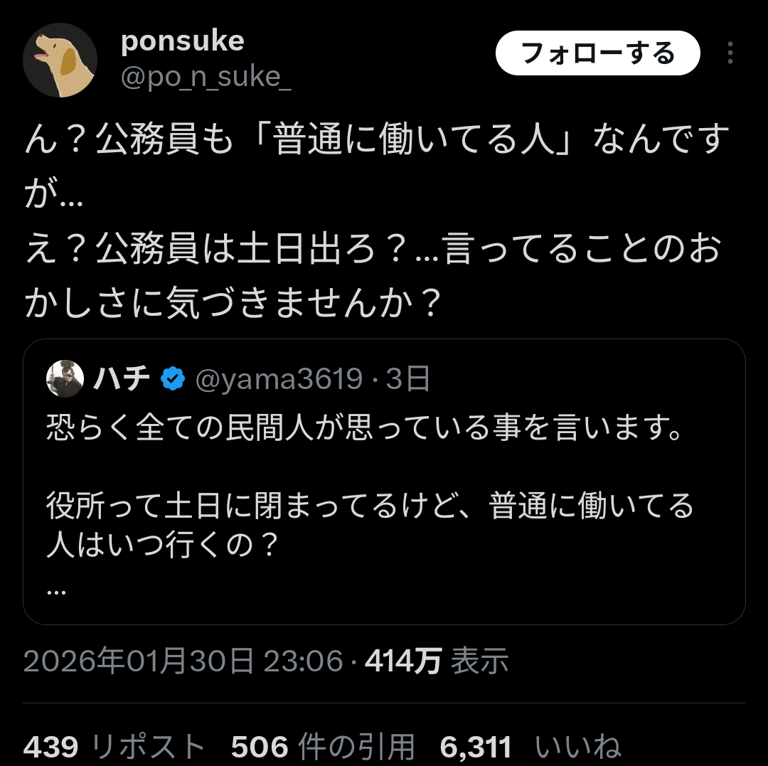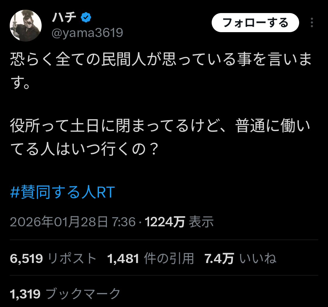 公務員、遂にキレた!「役所を土日開けろと言ってる愚民どもは公務員に土日出勤しろと言うのか?」