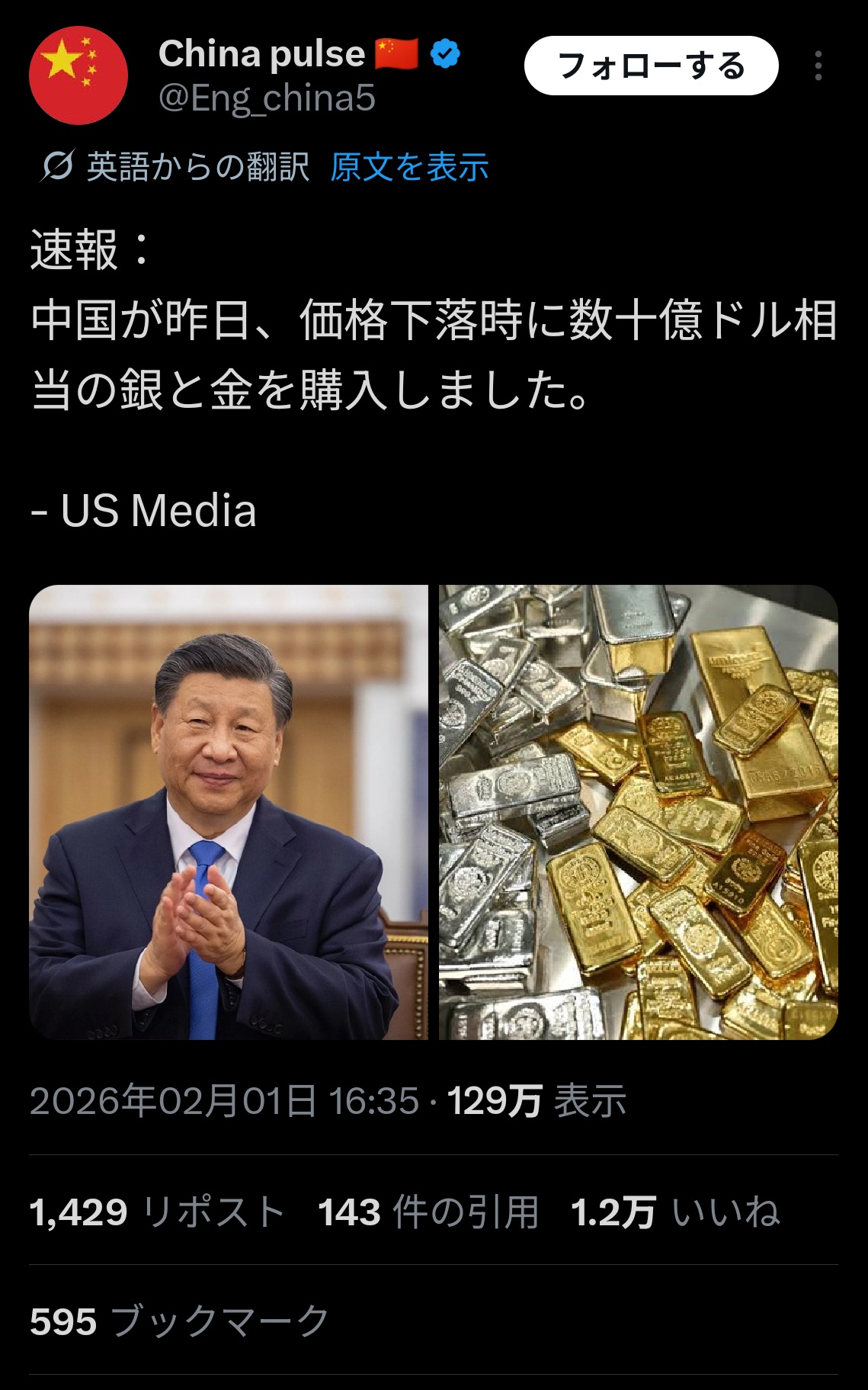 🇨🇳中国さん、暴落したゴールドを爆買いwwwww