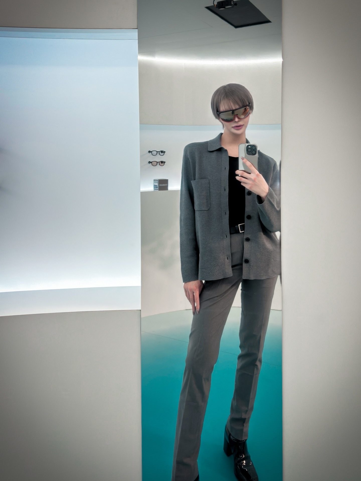 グレーを基調としたファッションを披露し「こちら着用してるのも全身ユニクロです」と明かした。
