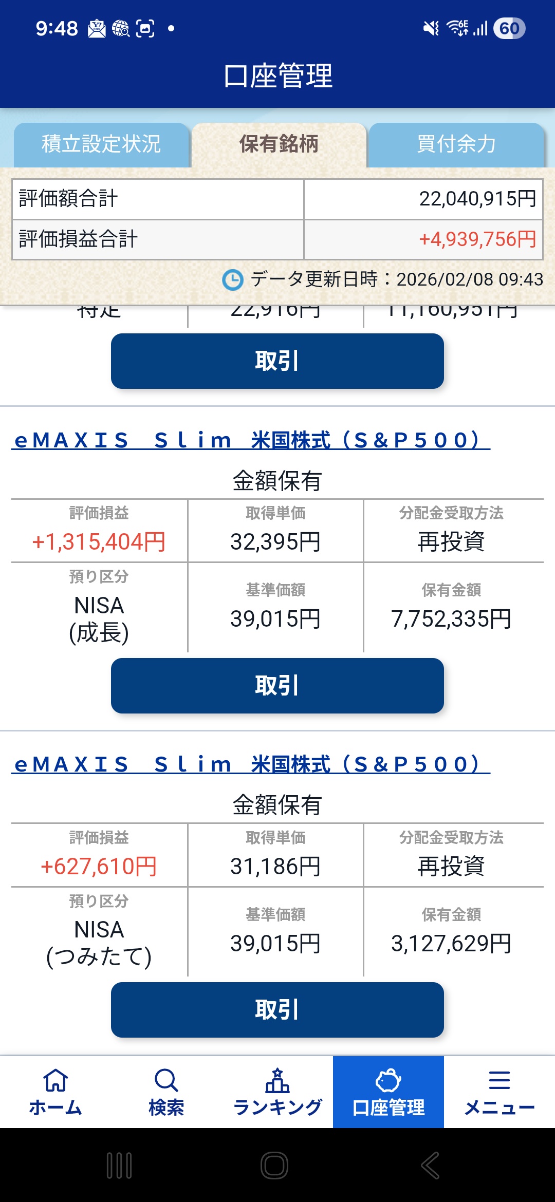 成長投資は個別株のがデカいのによく浮気しなかったな