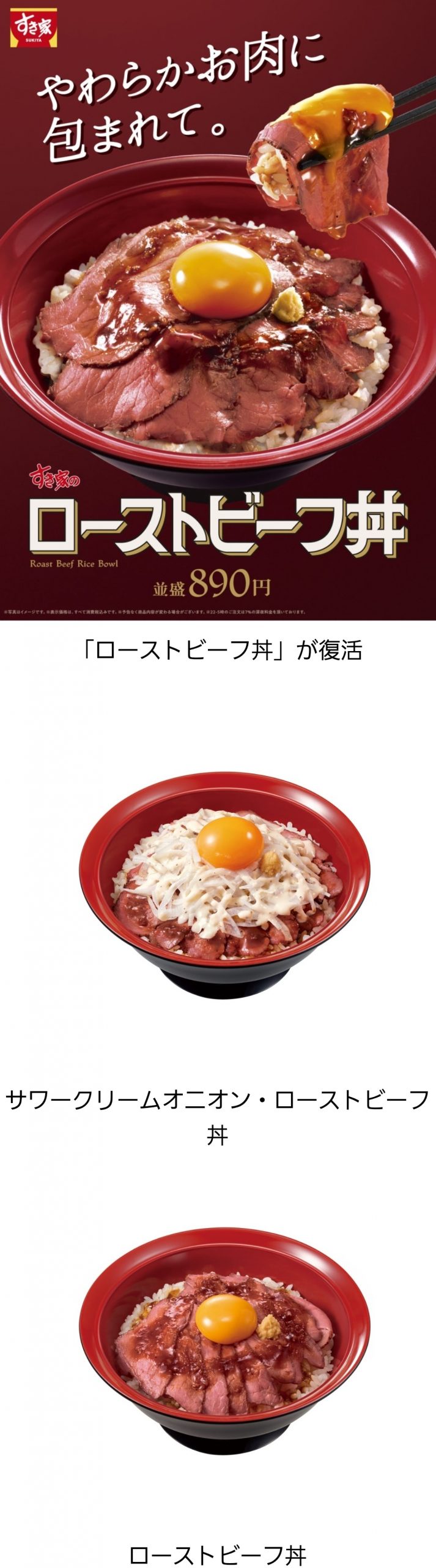 すき家】「発売から13日で品切れ」と昨年想定を上回る人気を集めた「ローストビーフ丼」が復活