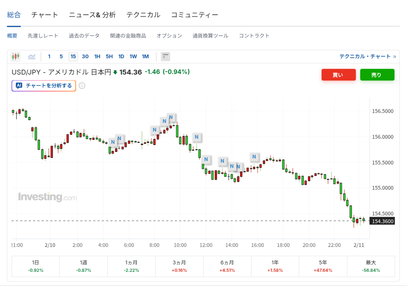 パ「そしてとどまることを知らない金利上昇と円安」 ←夕方から円高に振れてるが?